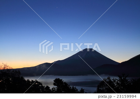 本栖湖からの夜明けの富士山