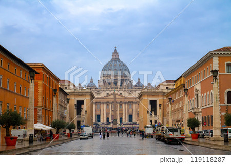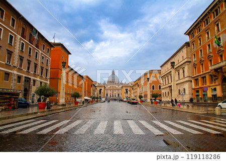 イタリア共和国ローマにある世界最小国家バチカン市国 世界遺産サンピエトロ大聖堂正面の通りからの景色