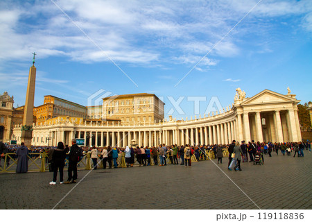 イタリアロ-マの世界遺産 バチカン市国にあるカトリック教会の総本山サン・ピエトロ広場の列柱1