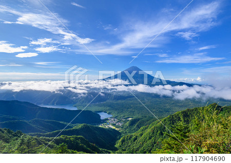 夏の晴れた空と富士山と雲海の絶景・金峰山より