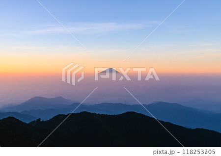 山梨県・王岳~鬼ヶ岳間の稜線から見る富士山と山並み
