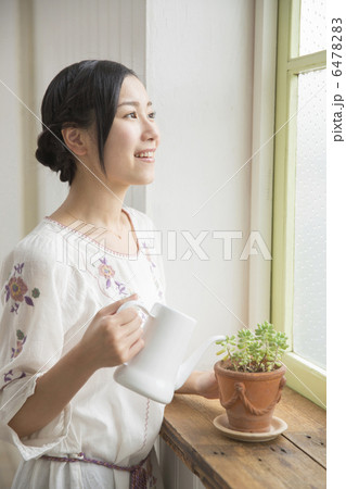 植物を世話する女の子 植物を育てる 女の子 小学生