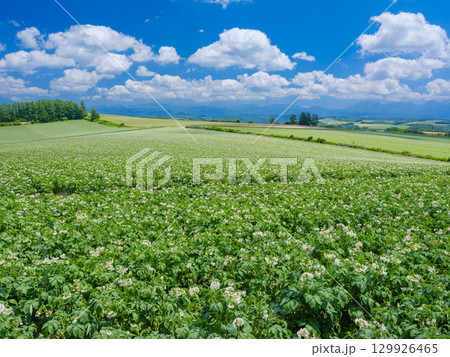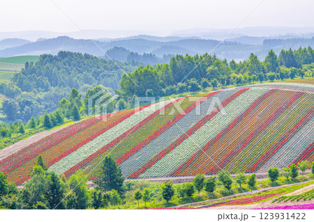 北海道美瑛町 美しい花模様が広がる初夏の四季彩の丘