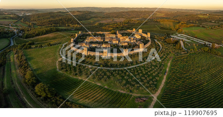 Beautiful autumn countryside with old town Monteriggioni, Tuscany, Italy