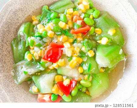 中国家庭料理・丝瓜炒毛豆(ヘチマと枝豆の中華炒め煮)