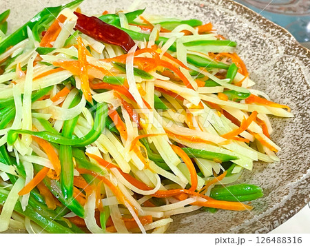中国家庭料理・千切りジャガイモとピーマンの炒め