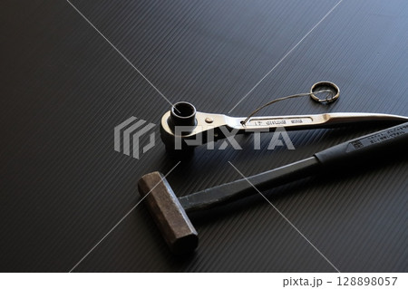 両口ラチェットレンチとハンマー シノとハンマー とび職の道具