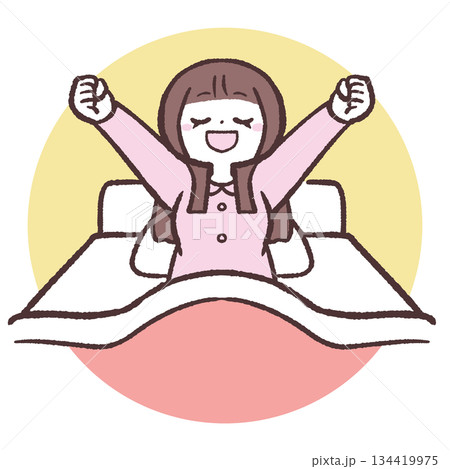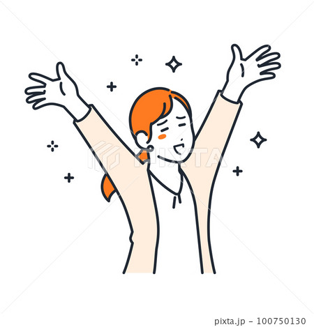 両手を上げて万歳する笑顔の女性 上半身イラスト