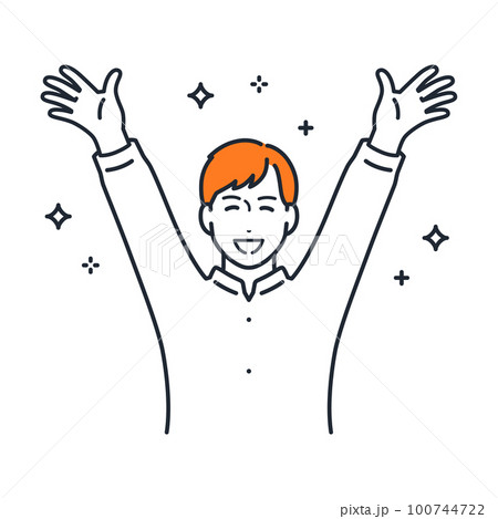 両手を上げて万歳する笑顔の男性 上半身イラスト
