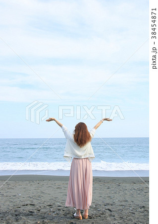 両手を広げる夏の女性 【撮影協力:隠岐シーサイドリゾートみやび様】