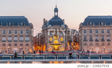 Place de la Bourse and Miroir d'eau day to night timelapse in Bordeaux, France