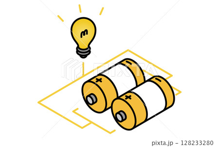 並列つなぎをした乾電池のシンプルな線画アイコン、アイソメトリックイラスト
