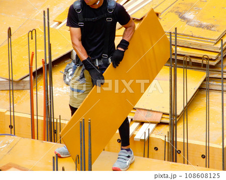 鉄筋コンクリートの型枠工事中