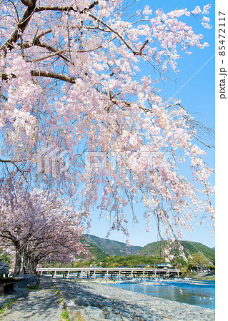 京都 嵐山 ~渡月橋と満開のシダレザクラ・中之島公園より~