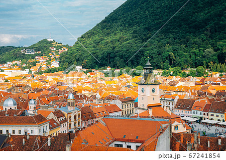 Medieval old town panorama view with Tampa mountain in Brasov, Romania