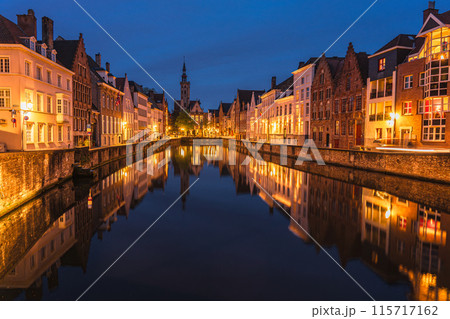 ベルギー ブルージュ ダイフェル運河 夕焼け