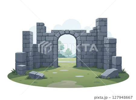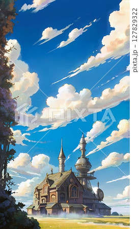 ゲーム背景 遠くに見える古い教会遺跡