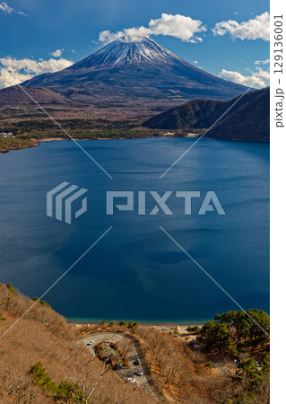 冬の中之倉展望台から見る富士山と本栖湖