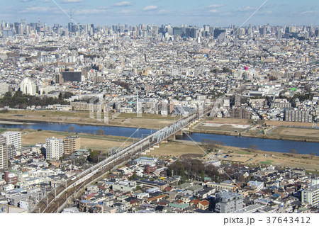 川崎市中原区武蔵小杉から多摩川 田園調布方面を望む