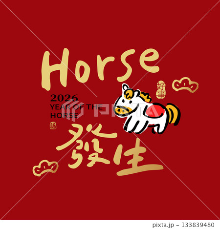 2026 Lunar New Year Horse. calligraphy"good luck".