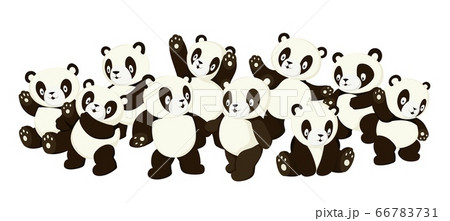 Cute cartoon panda characters crowd with various emotions vector illustration