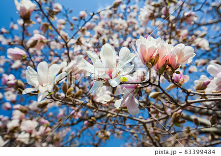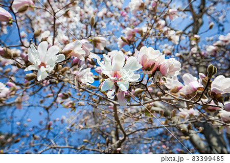 青空にハクモクレンが満開です。華やかさがあふれています。-2