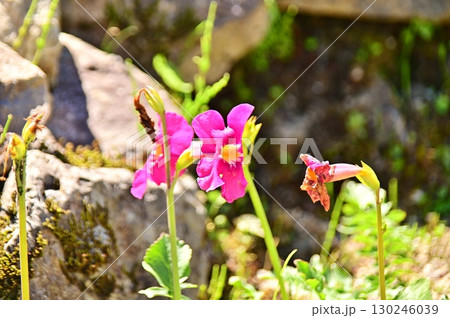 岩場に咲く赤い花インカルビレア・ゾンディアネンシス