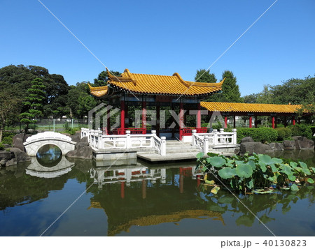 横浜市の本牧市民公園にある上海横浜友好園(玉蘭庁・池・湖心亭)