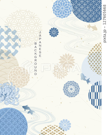 夏の和柄のシームレスパターン 16セット / 日本、背景、和、模様、青