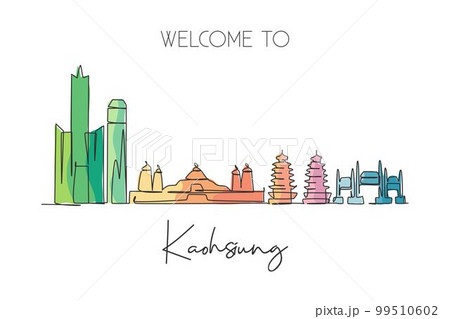 One continuous line drawing of Kaohsiung city skyline, Taiwan. Beautiful landmark. World landscape tourism and travel vacation. Editable stylish stroke art single line draw design vector illustration