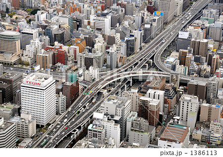 大阪市内の阪神高速道路を空撮