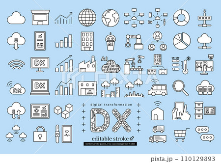 DX 企業のデジタルトランスフォーメーションのアイコンセット (編集可能なストローク)