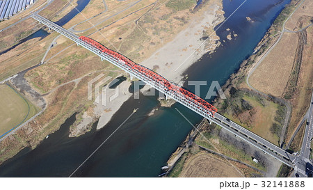 [空撮]筑後川 筑後川橋(通称名、片の瀬橋)大刀洗町と久留米市を結ぶ筑後川上の橋