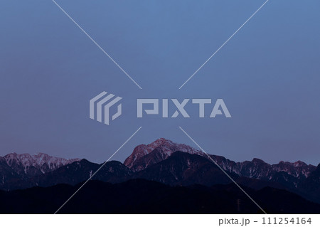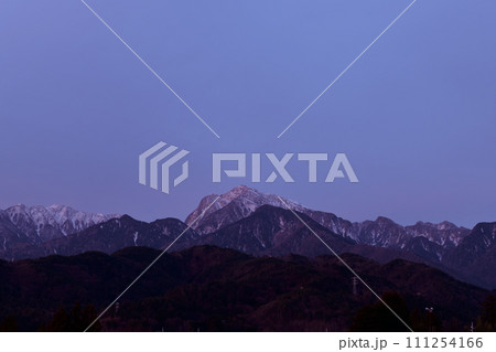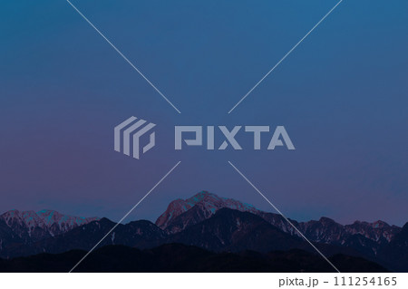 日の出を待つ南アルプス甲斐駒ケ岳と前衛の山
