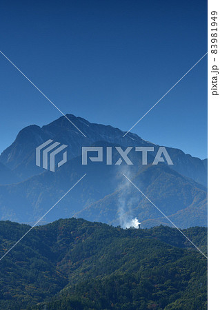 北杜市白州町、よく晴れ渡った日、中山砦から狼煙が上がった北杜市白州町、よく晴れ渡った日、中山砦跡か