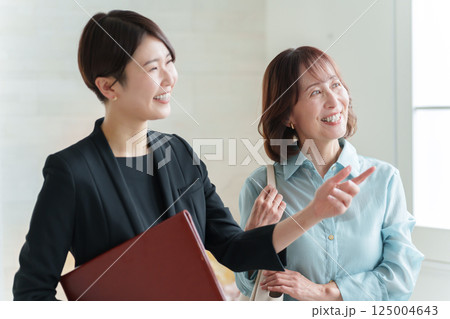 シニア女性に説明をするビジネスウーマン