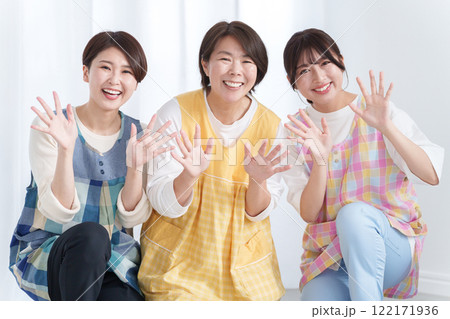 保育園の女性保育士たち(手を振る)