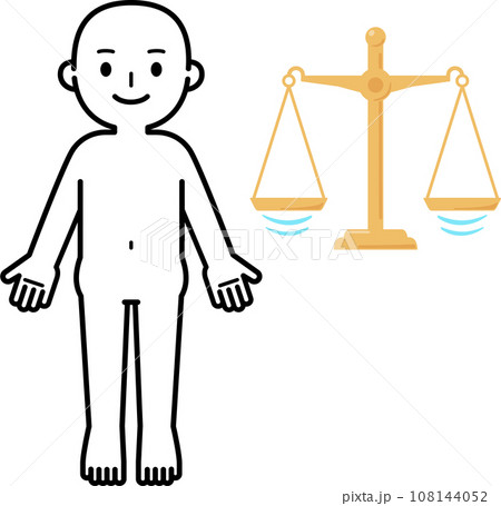 左右が釣り合った天秤と人物
