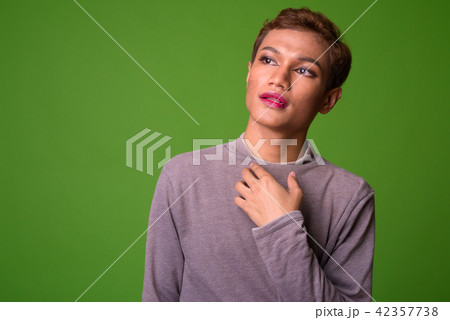 Androgynous young Asian man wearing makeup