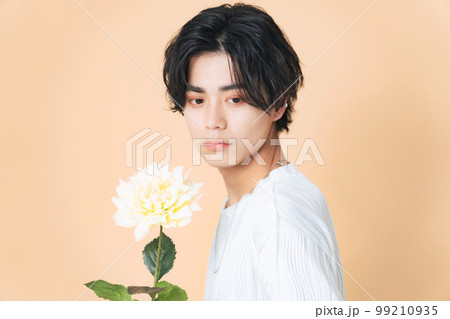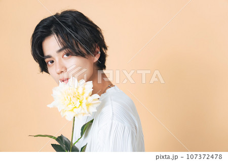 花を持つ男性 ジェンダーレスメイク メンズコスメ スキンケア