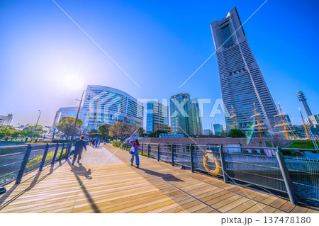 日本の横浜都市景観リニューアル…ボードウォーク改修工事。汽車道に影が揺れる、水上タクシー…新時代へ