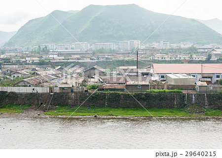 中朝国境 鴨緑江の対岸は北朝鮮・恵山市 中国・吉林省長白朝鮮族自治県