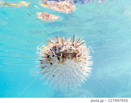 膨らんだハリセンボンの半水面撮影。ヒリゾ浜中木南伊豆町伊豆半島静岡県2024