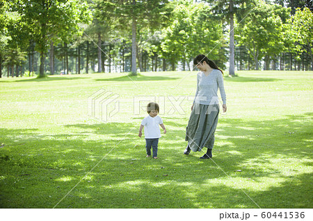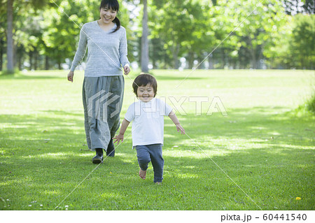 公園で遊ぶ親子