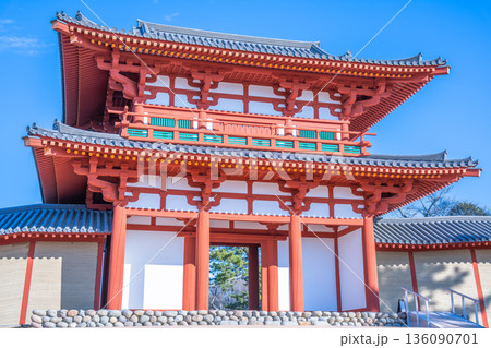 多賀城跡 多賀城南門 青空に映える朱塗りの外郭南門
