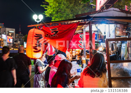 夜の夜の博多 中洲の屋台 ※一部ソフトフォーカス