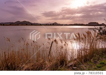 鳥取県米子市 春の米子水鳥公園の夕景