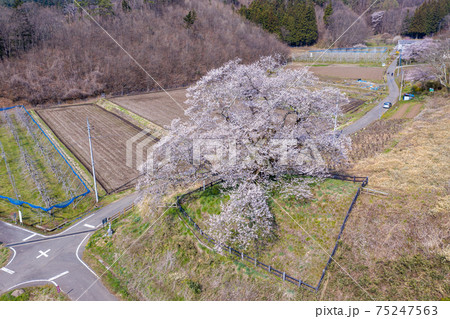 空撮「群馬県」発知のヒガンザクラ