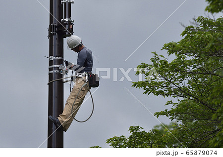 携帯電話基地局 柱上で設備工事