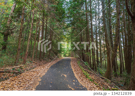 針葉樹林の中を通る道 京都府笠置町